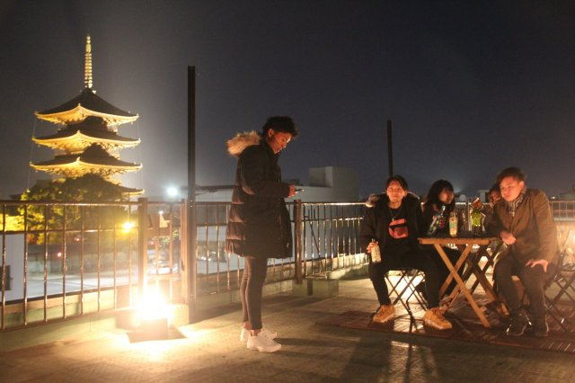 屋上スペース無料開放しております。東寺のライトアップは絶景ですよ!